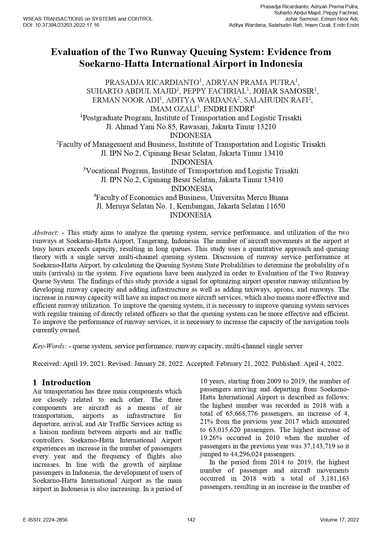 | Title: | Evaluation of the Two Runway Queuing System: Evidence from Soekarno-Hatta International Airport in Indonesia |